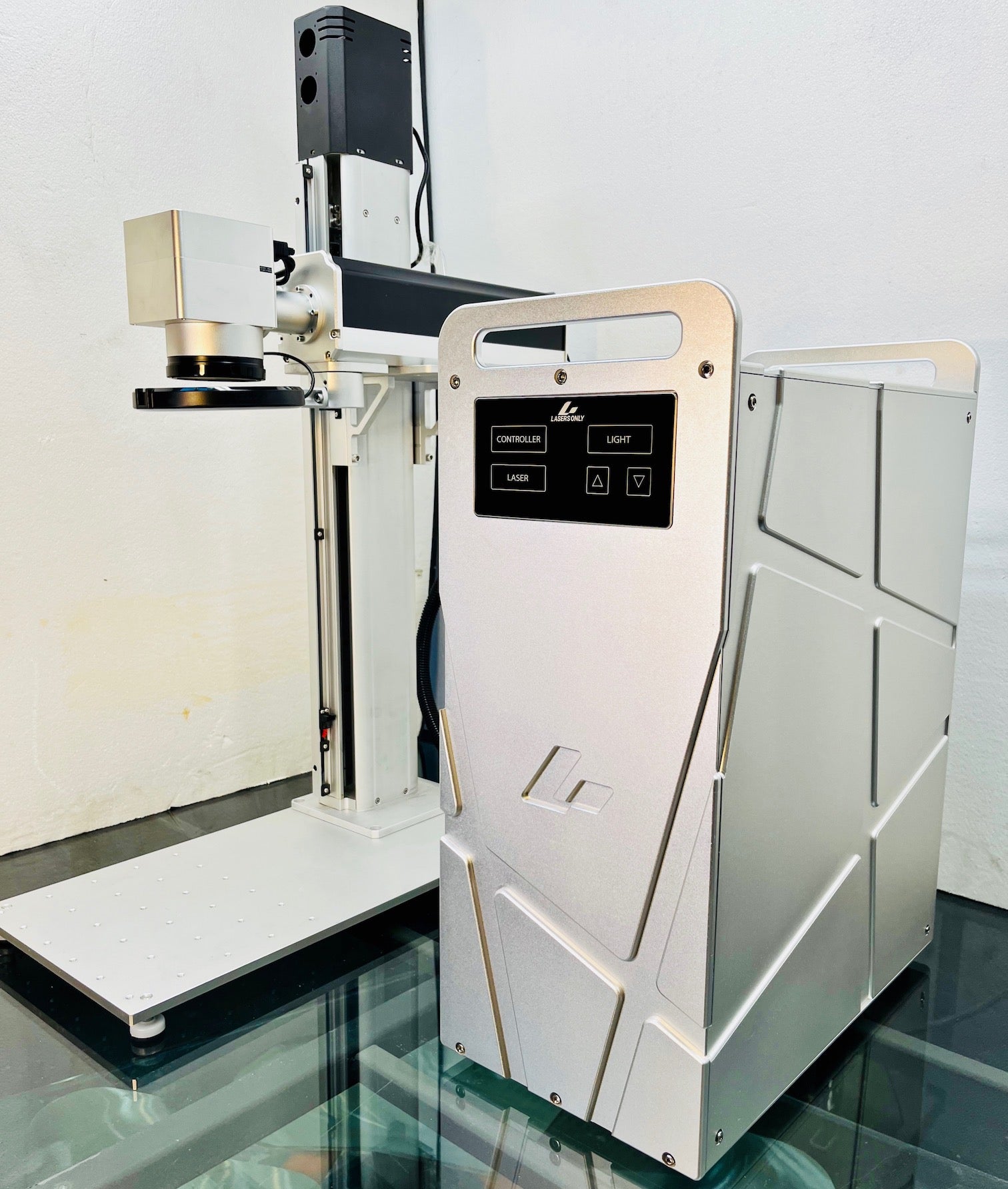 Our new 200W Fiber Laser Marking Machine is the most powerful desktop split-system model, running on a standard 110V power line with an air cooling method for convenience.