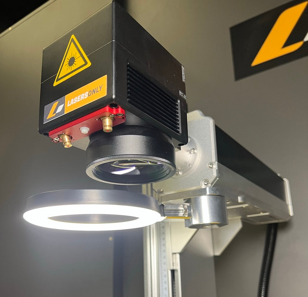 We use only high-quality brand-name components to construct our fiber laser machines. Our machines are equipped with a motorized tower and a touchscreen display, allowing for the operation of the laser, work area lights, and the Z-axis. The proprietary rotating LED light fixture was designed to add convenience. We also provide a wireless remote control for adjusting the Z-axis, and a manual crank for fine-tuning the focal length. We set up the Dual Red Dot Easy Focusing device for the two lenses that come with all our machines.