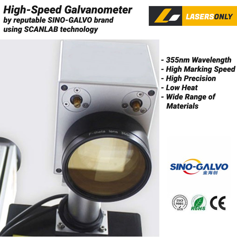 5W UV lasers are efficient marking machines. By using a highly absorbent wavelength of 355 nm, 5W UV laser is able to achieve clear marking at lower power levels, creating a "cold marking" process that does not add heat stress to materials, including those with high reflectances such as gold, silver, and copper. This leads to less soot and burrs compared to traditional marking techniques. Additionally, 5W UV laser produces high-quality, high-contrast marks in one application, resulting in better aesthetics and improved readability and precision. Furthermore, 5W UV lasers are as fast as other fiber lasers and significantly faster than gantry-based alternatives.