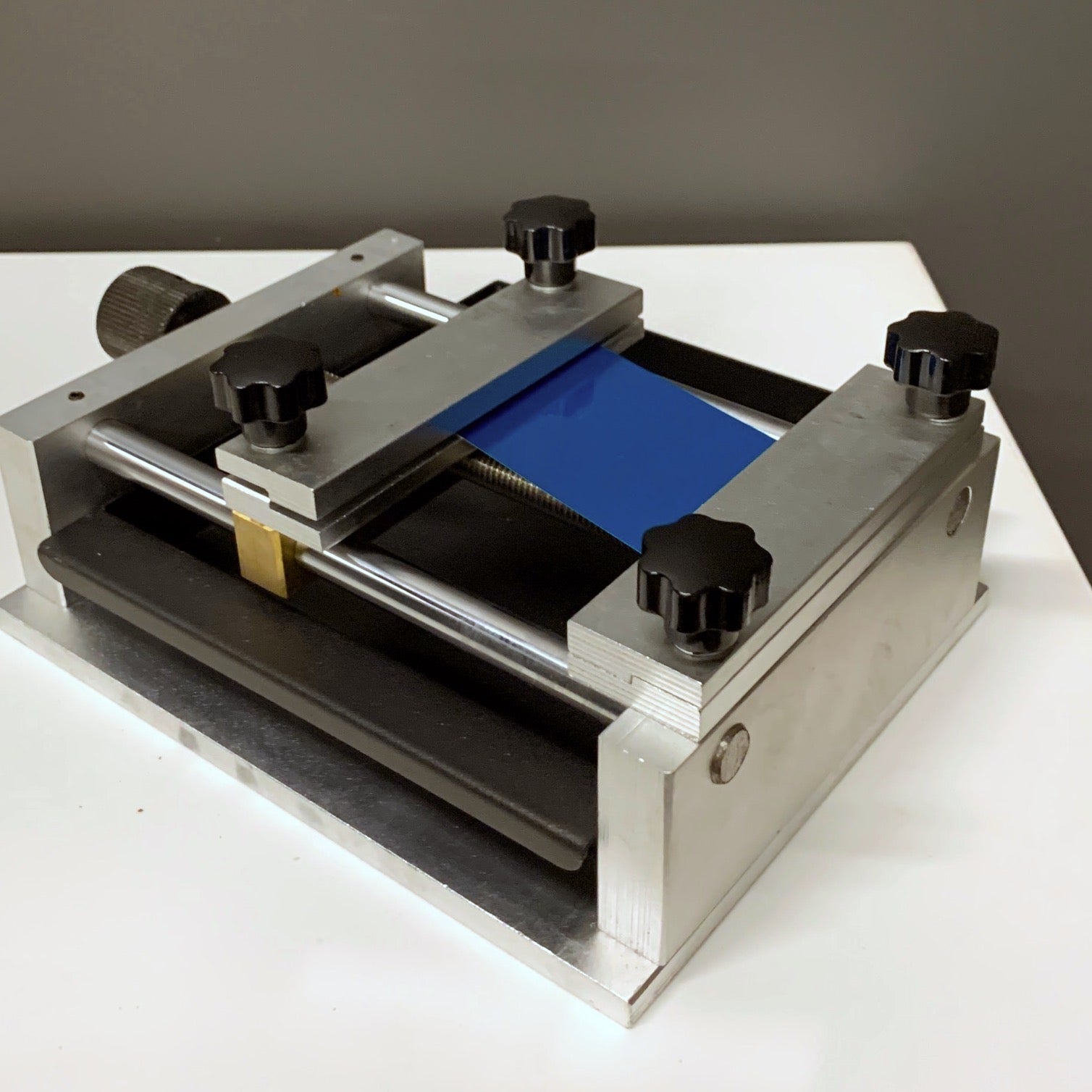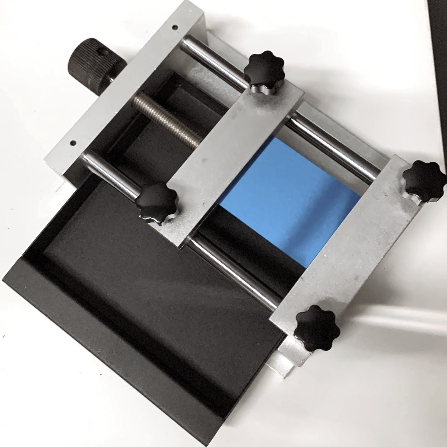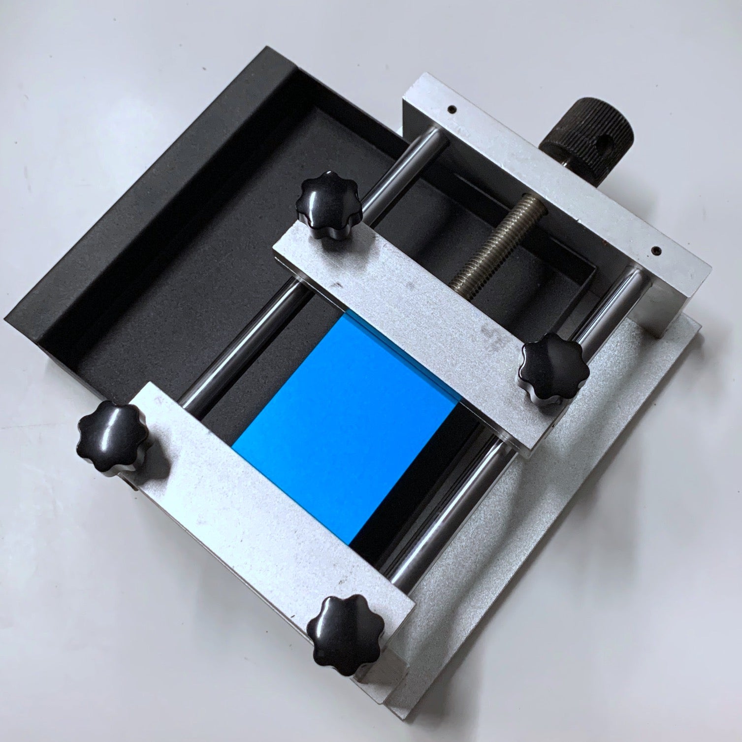 This clamping table is made of solid aluminum for a sturdy construction. The clamping screws are spring-loaded. The tray is removable for easy cleaning. It's a convenient way to hold an object for engraving. The air cushion underneath helps remove laser heat from the material's surface for better results and to prevent overburning.